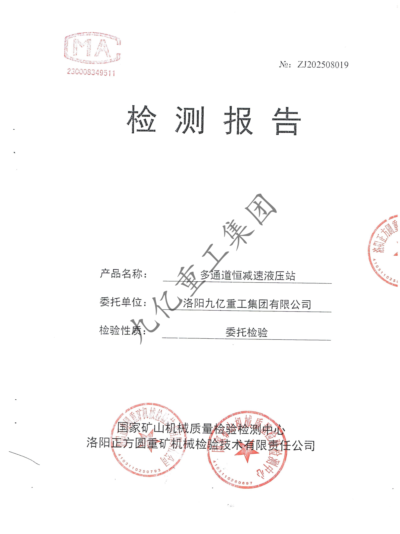 多通道恒減速液壓站檢驗(yàn)報告